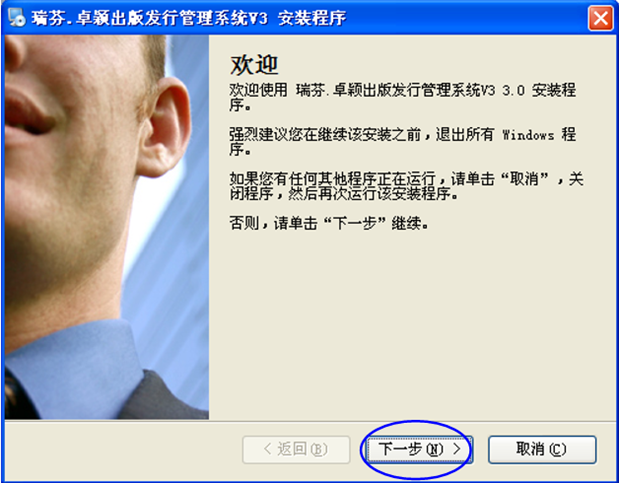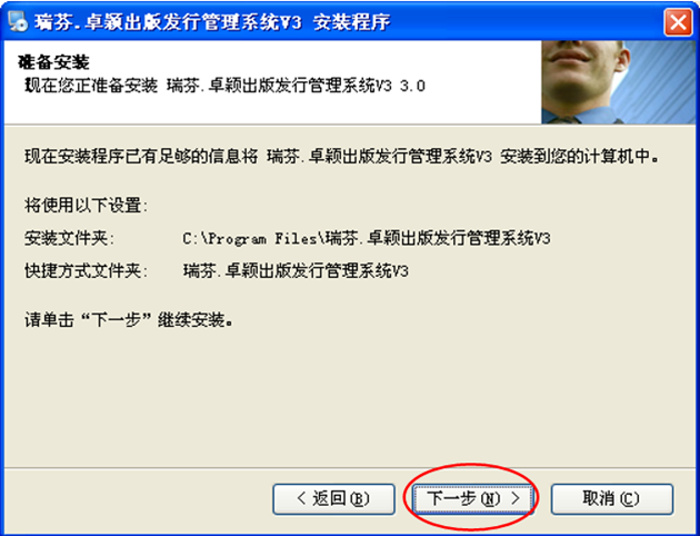 瑞芬.卓颖出版发行管理系统V3.exe默认安装,如下图: